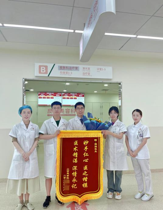 在6月11日,我院皮膚美容科,因一面火紅錦旗的到來,使得整個科室洋溢著溫暖的氣息。遠在山西的患者陳女士寄來了寫有“妙手仁心醫(yī)之楷模,醫(yī)術(shù)精湛深情永記”的錦旗送給譚強醫(yī)生,以表達感激之情。收到這份錦旗的意義并不尋常,陳女士不僅對譚醫(yī)生的醫(yī)術(shù)表示了高度的認可和贊揚,更對他的人格魅力和職業(yè)精神表達了深深的敬意。