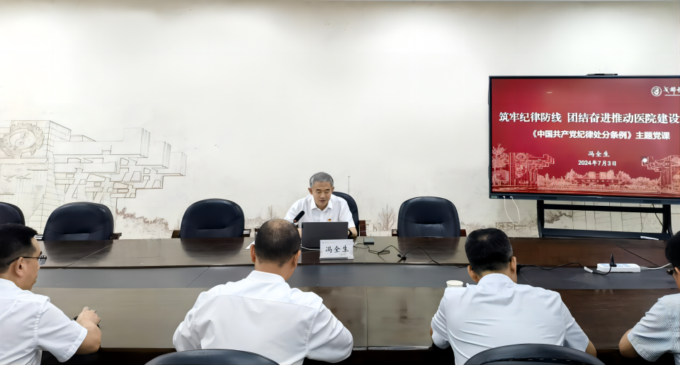 為切實(shí)推動(dòng)黨紀(jì)學(xué)習(xí)教育走深走實(shí),認(rèn)真貫徹落實(shí)關(guān)于黨紀(jì)學(xué)習(xí)教育的部署要求,7月3日上午,校黨委常委、副校長(zhǎng)馮全生以“筑牢紀(jì)律防線 團(tuán)結(jié)奮進(jìn)推動(dòng)醫(yī)院建設(shè)發(fā)展”為題,為成都中醫(yī)藥大學(xué)第二附屬醫(yī)院和第三附屬醫(yī)院黨員講授黨紀(jì)學(xué)習(xí)教育主題黨課。黨課學(xué)習(xí)由成都中醫(yī)藥大學(xué)第二附屬醫(yī)院/第三附屬醫(yī)院黨總支書記楊川主持。