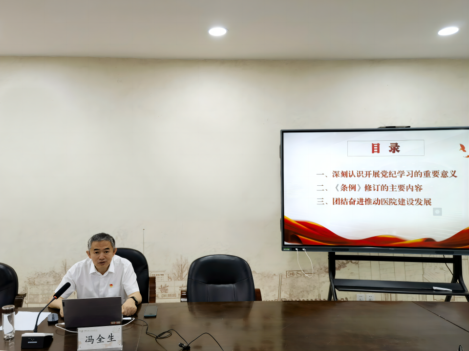 馮全生指出黨紀(jì)學(xué)習(xí)對(duì)于醫(yī)院建設(shè)發(fā)展有重要啟示,一是要強(qiáng)化醫(yī)院黨風(fēng)廉政建設(shè),強(qiáng)化醫(yī)院黨員、年輕干部、新任職干部干部的紀(jì)律意識(shí)和規(guī)矩意識(shí),推動(dòng)醫(yī)院黨風(fēng)廉政建設(shè)縱深發(fā)展;二是要提升醫(yī)院管理水平,黨紀(jì)教育與醫(yī)療業(yè)務(wù)深度融合,把黨紀(jì)教育融入到科室建設(shè)、業(yè)務(wù)發(fā)展等日常工作中,做到知行合一;三是要優(yōu)先保障患者權(quán)益,醫(yī)院黨員干部樹立正確的價(jià)值觀和職業(yè)道德,始終把患者利益放在首位,為患者提供優(yōu)質(zhì)的醫(yī)療服務(wù);四是要推動(dòng)醫(yī)院建設(shè)發(fā)展,提高黨員干部的綜合素質(zhì)和能力水平,及時(shí)發(fā)現(xiàn)和糾正醫(yī)院在發(fā)展過程中出現(xiàn)的問題,改革創(chuàng)新,敢想改為,建設(shè)雙一流大學(xué)一流附屬醫(yī)院。