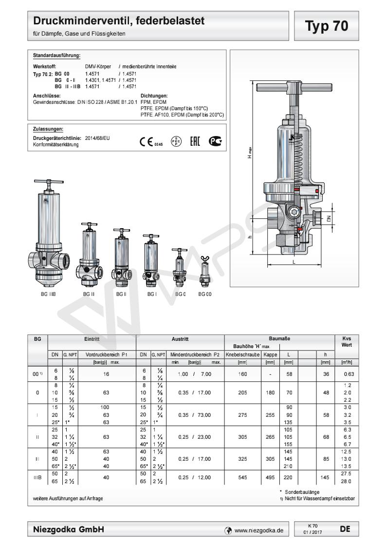 Typ 70 德國進口螺紋減壓閥的技術(shù)參數(shù)