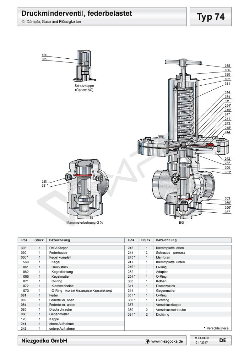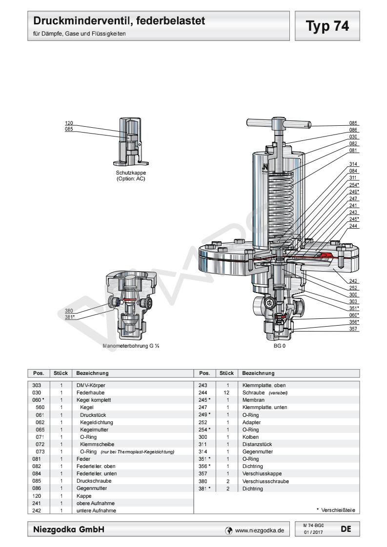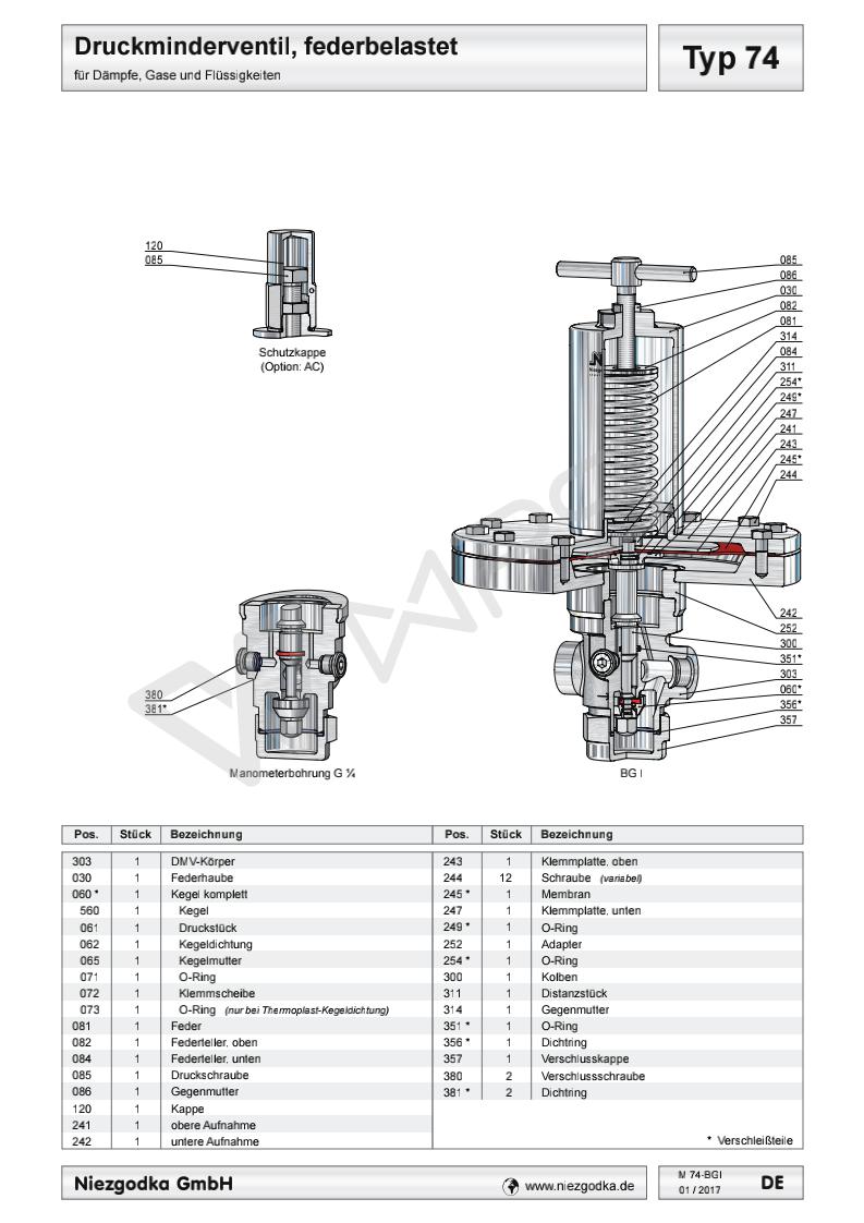 Typ 74 德國進口超低壓螺紋減壓閥的各項技術參數