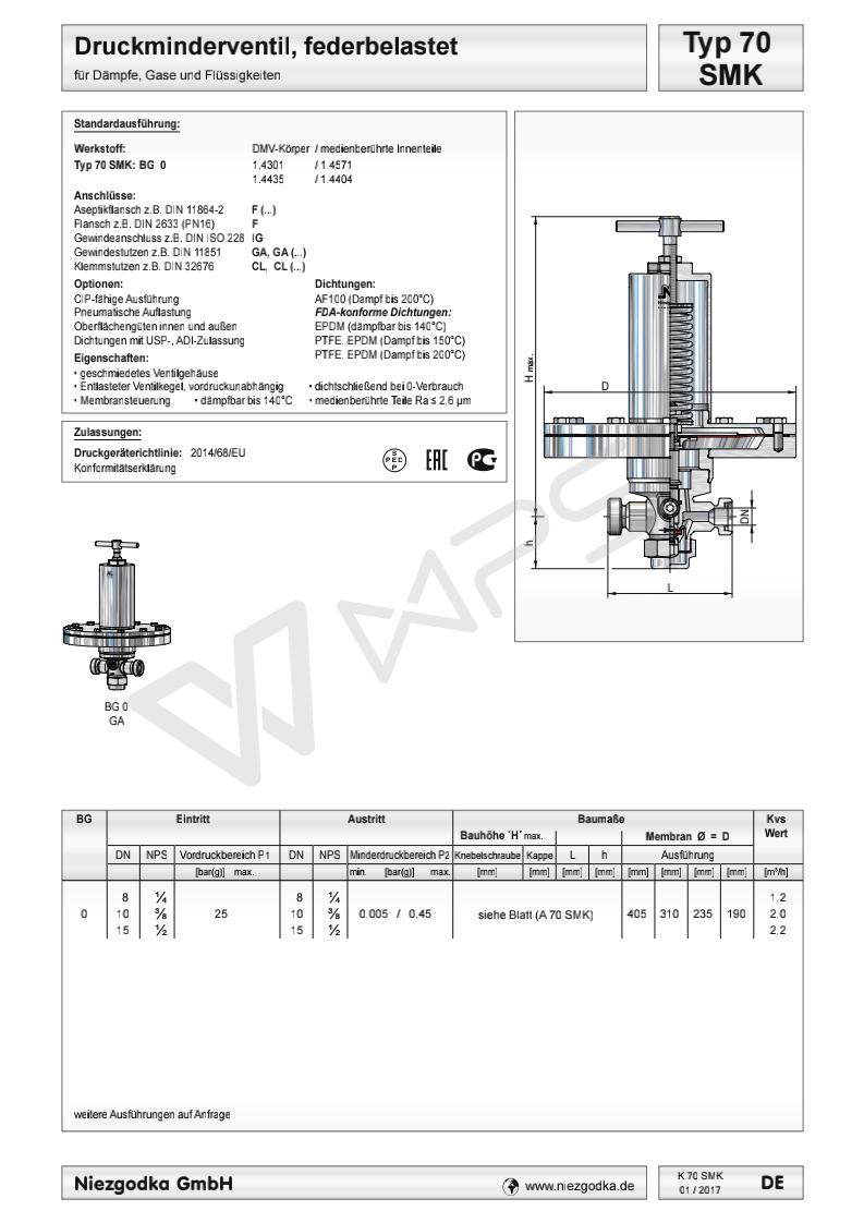 德國Niezgodka進口衛生級超低壓減壓閥 Typ 70 SMK