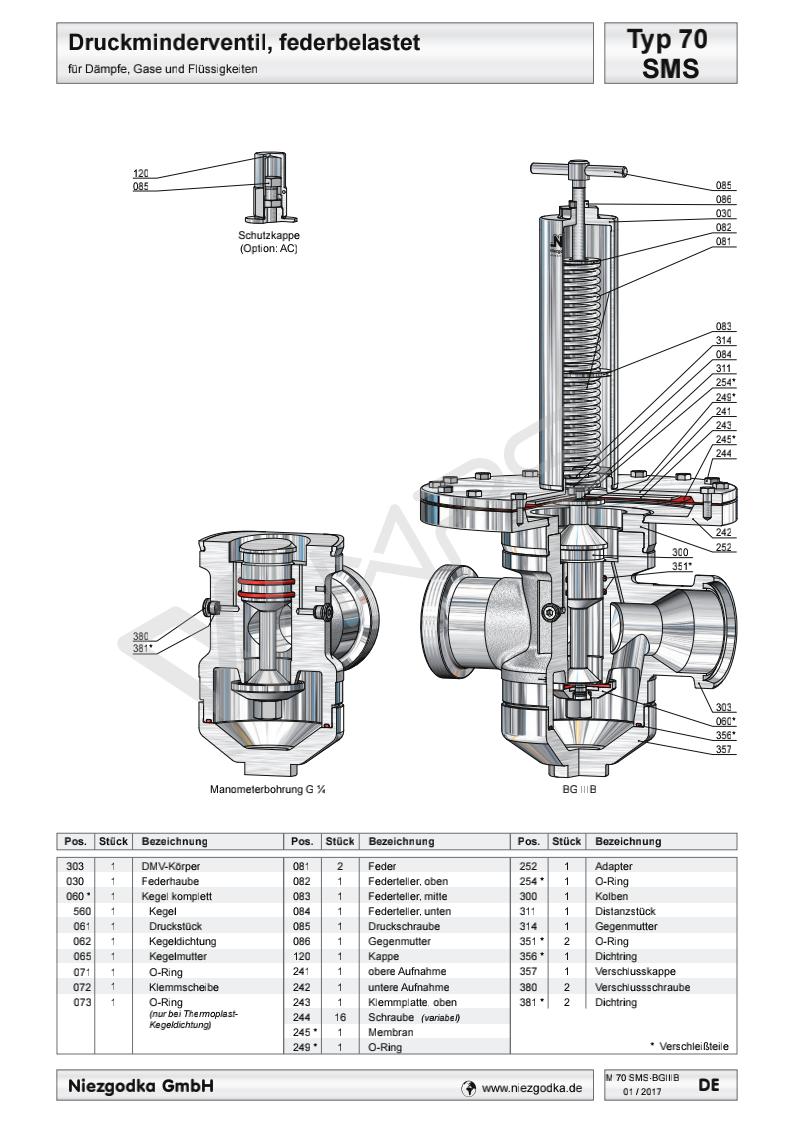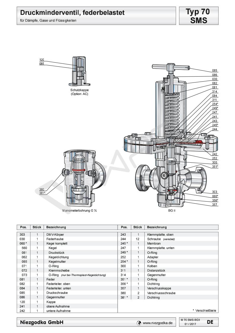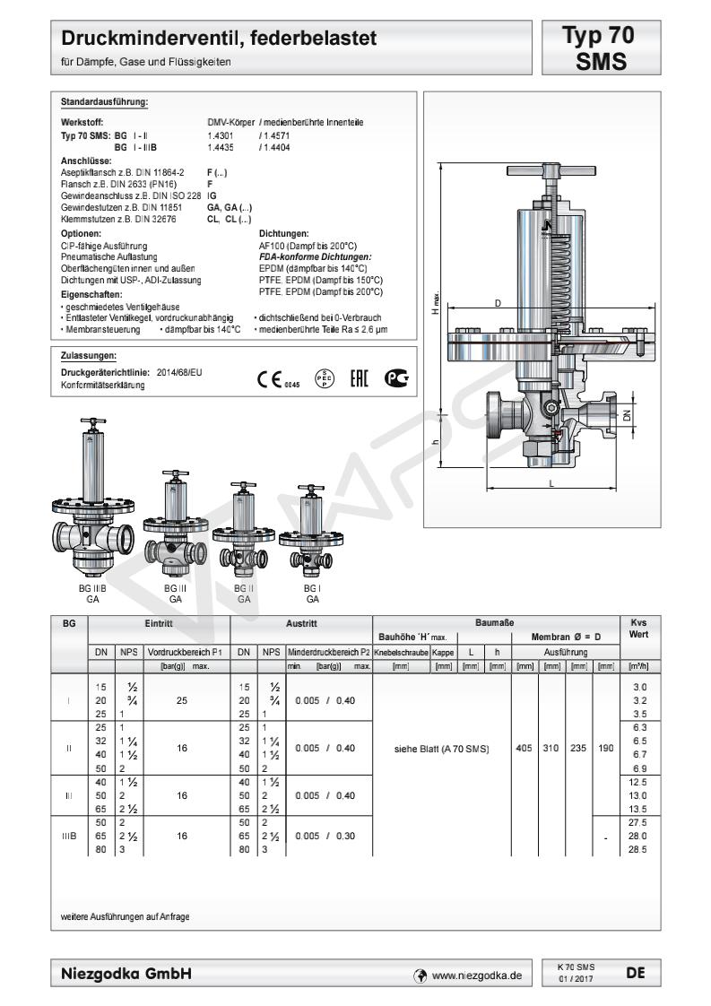 Typ 70 SMS 德國進口衛生級超低壓減壓閥的技術參考文件