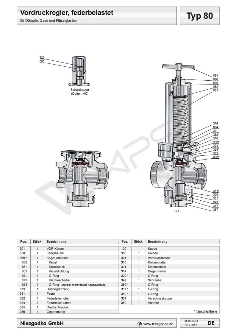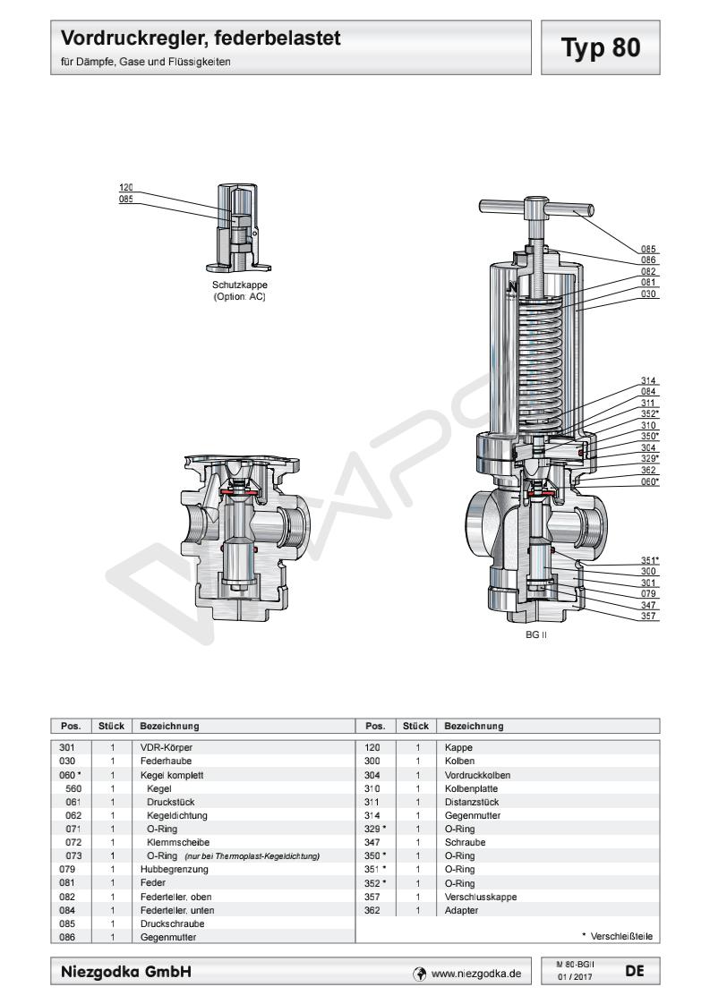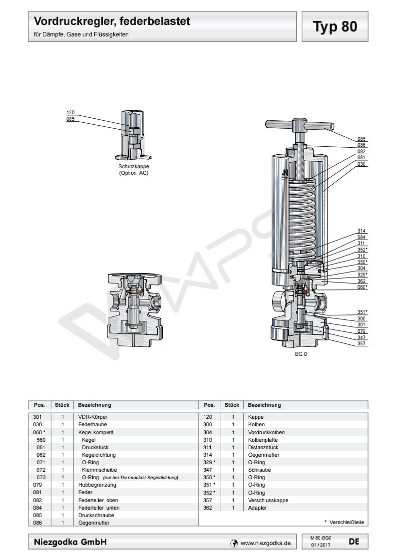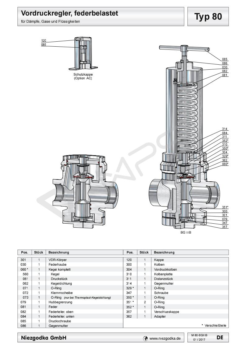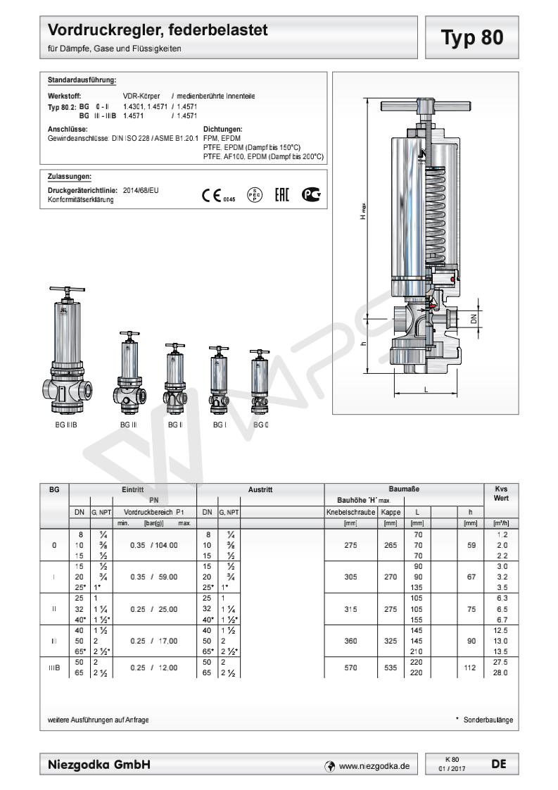 德國原裝進口螺紋壓力控制閥的各項技術參數 Typ 80