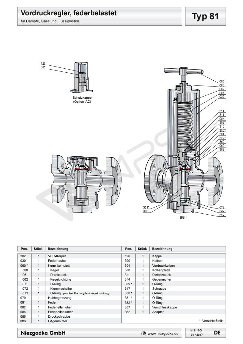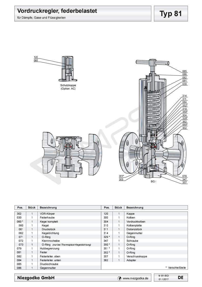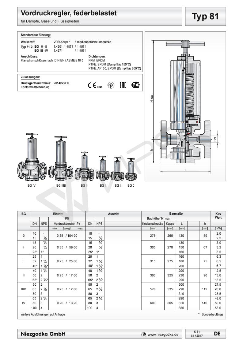 德國進口法蘭壓力控制閥的技術參數 Typ 81