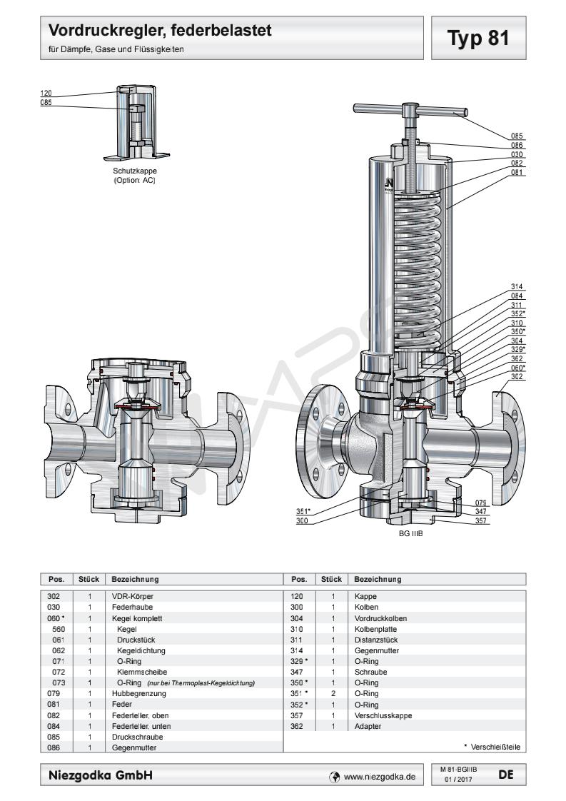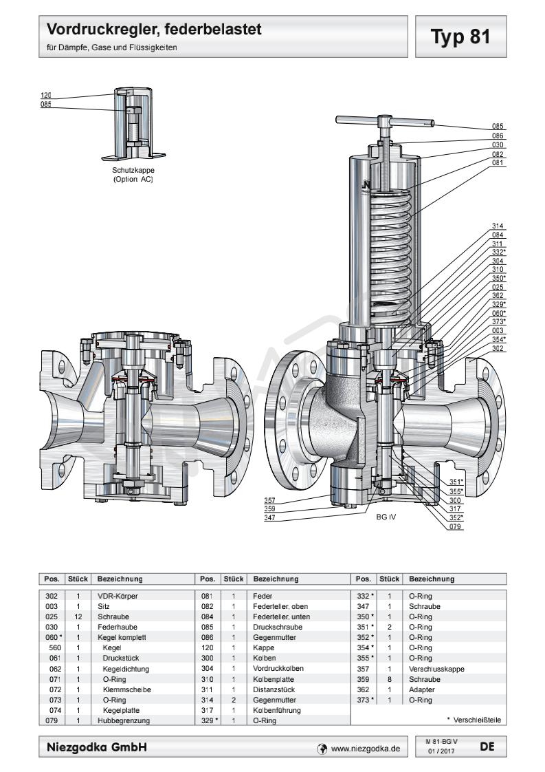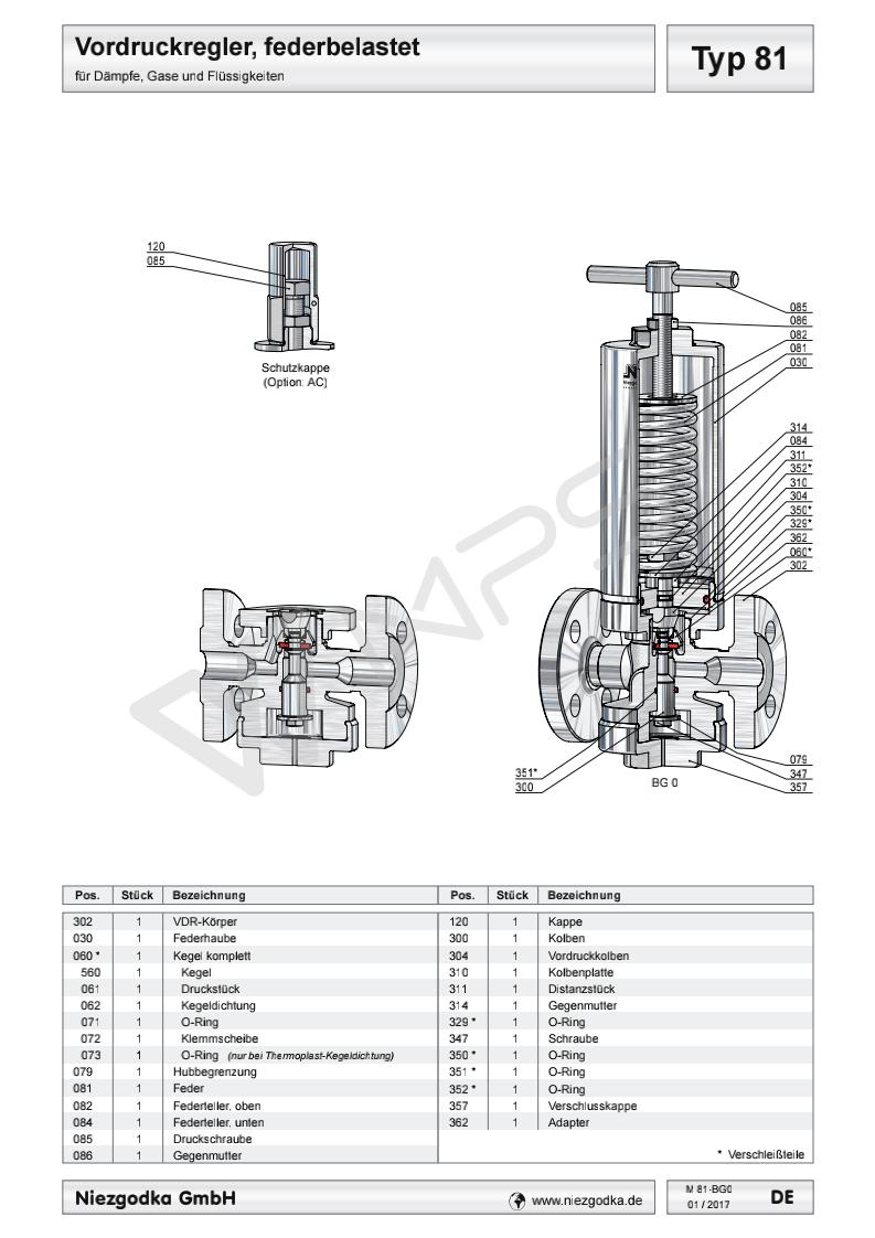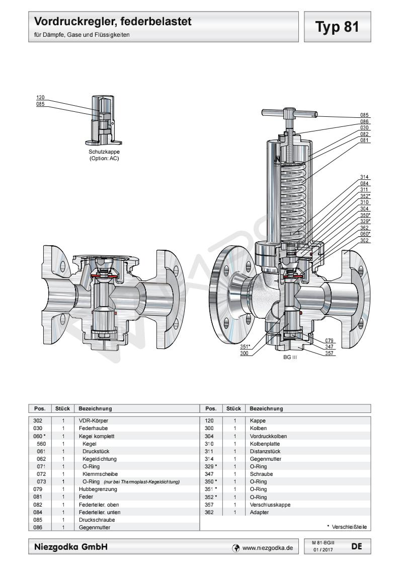 德國進口法蘭壓力控制閥的技術參數 Typ 81