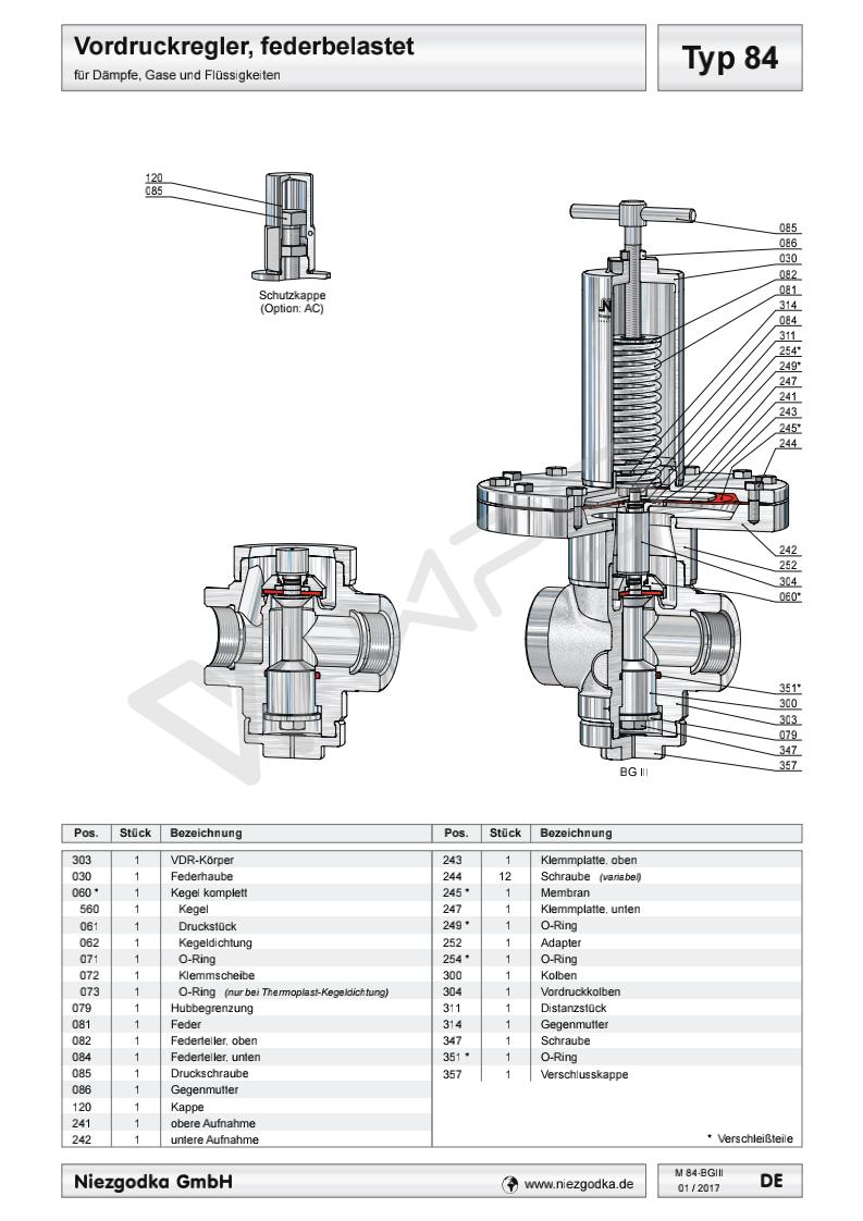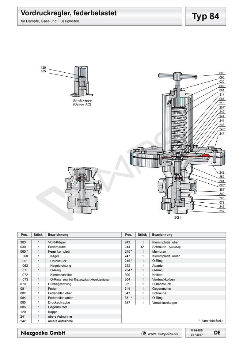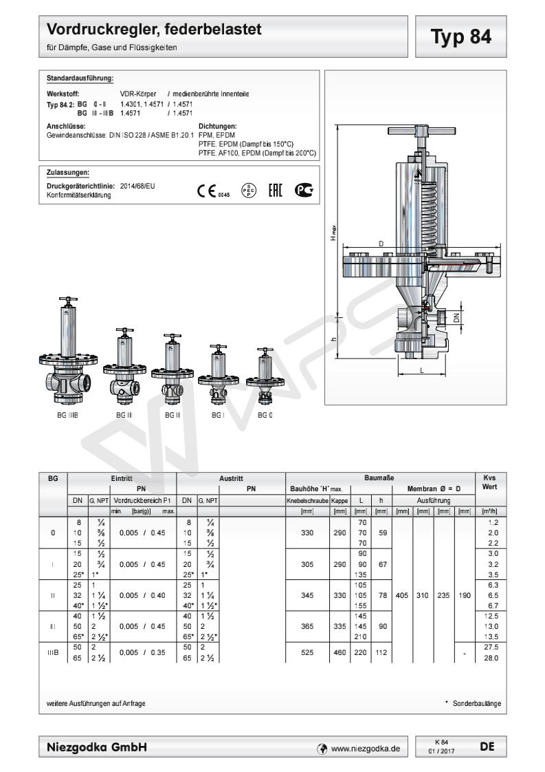 德國Niezgodka進口超低壓螺紋壓力控制閥 Typ 84