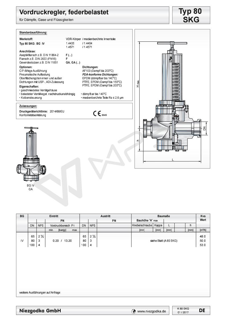 | Typ 80 SKG 德國Niezgodka進口衛(wèi)生級壓力控制閥 |