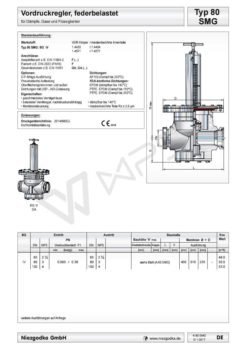 德國Niezgodka進口衛(wèi)生級壓力控制閥 Typ 80 SMG