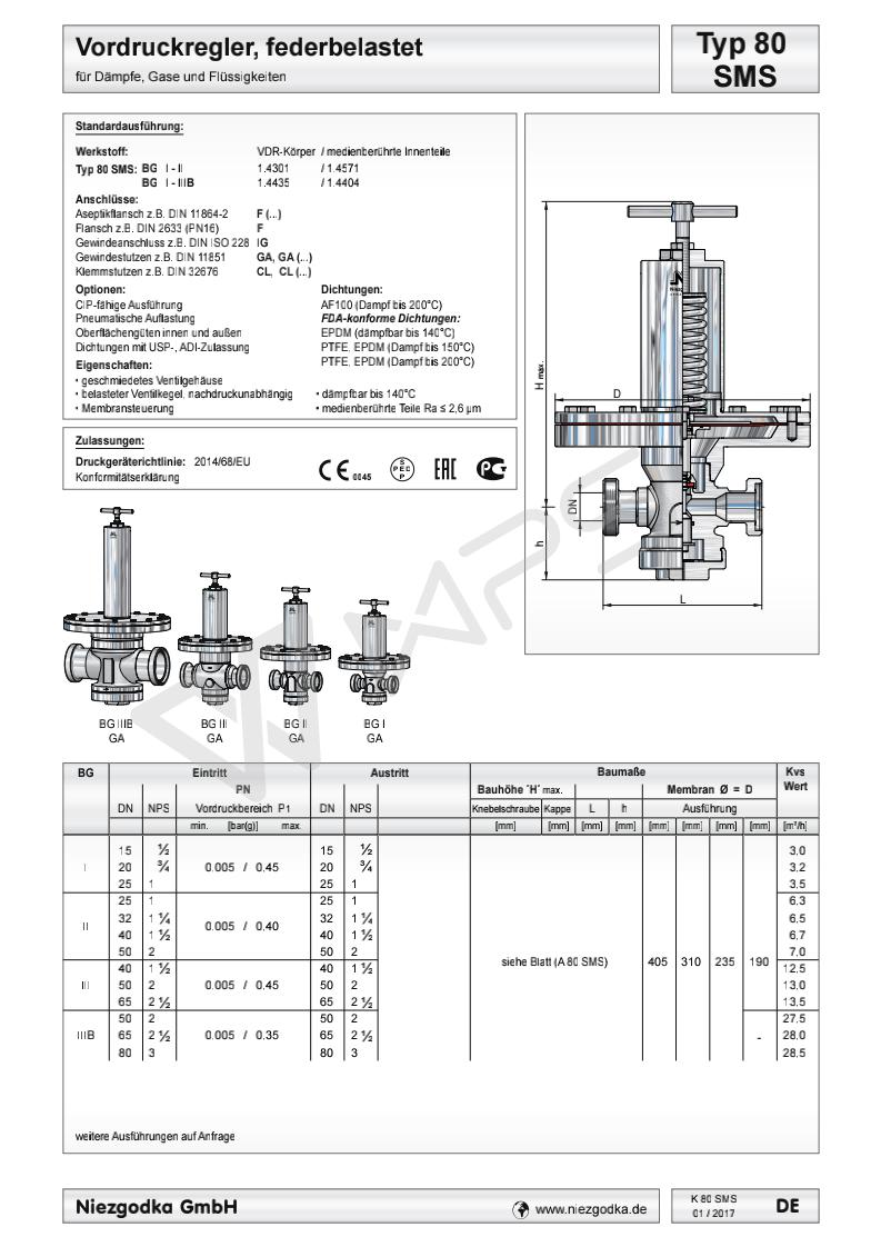 Typ 80 SMS 德國Niezgodka進口衛(wèi)生級壓力控制閥