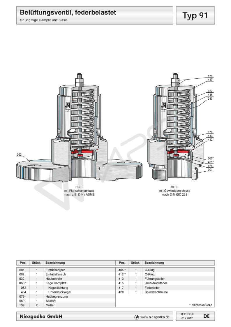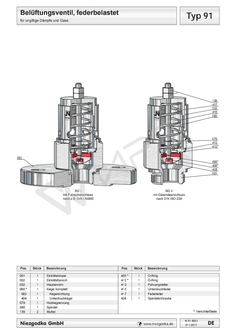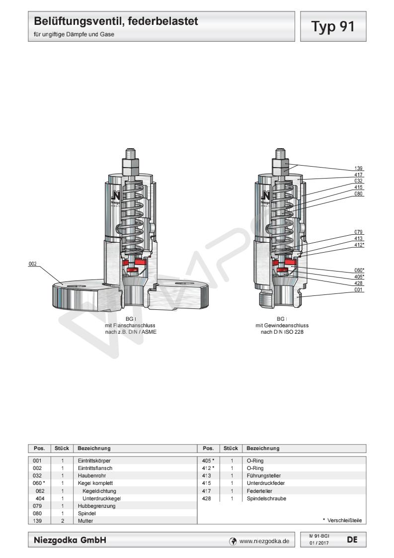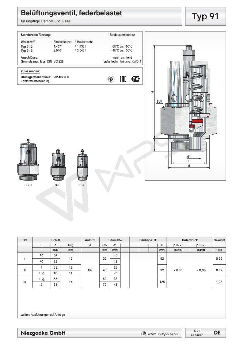 | 德國Niezgodka進口真空安全溢流閥 Typ 91 |