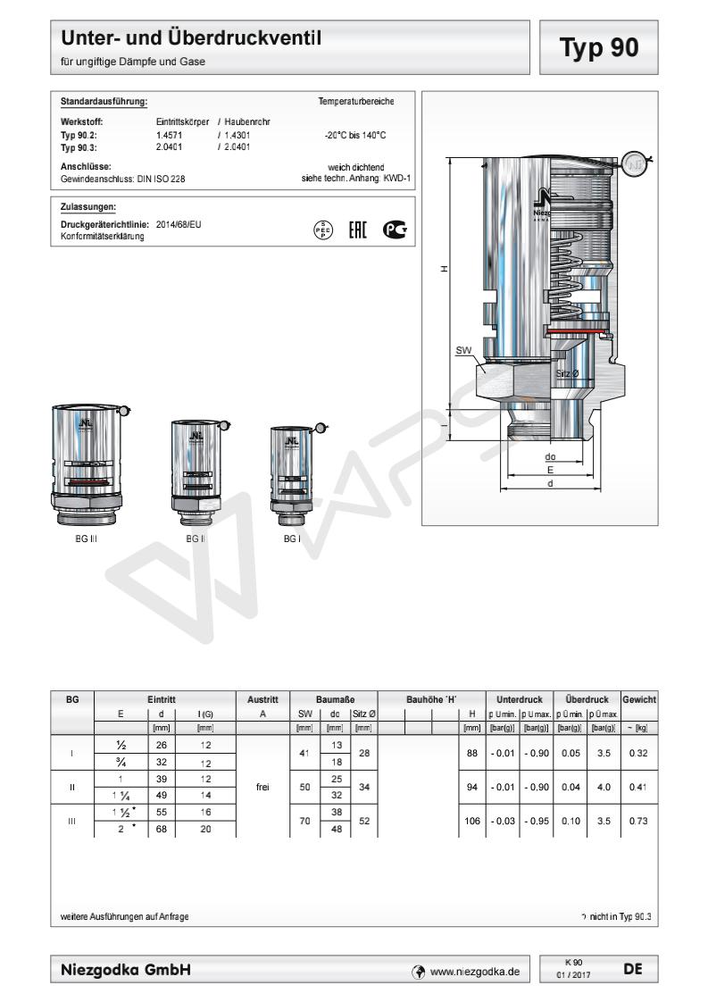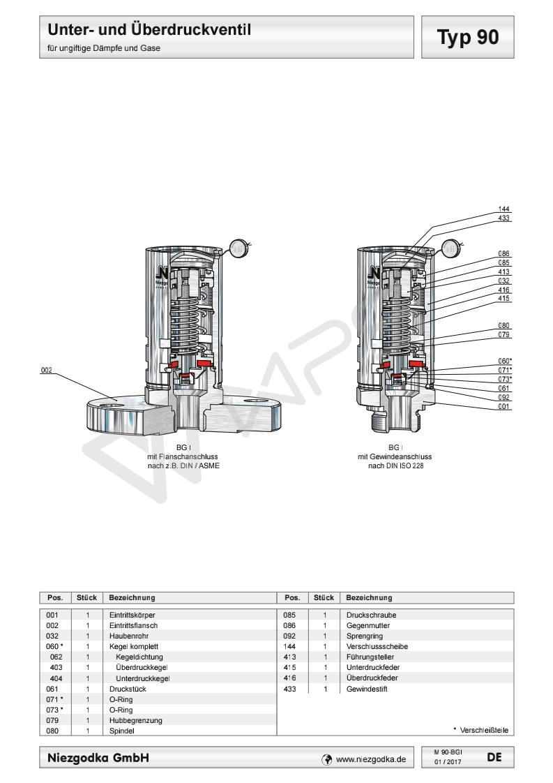 | 德國Niezgodka進口真空安全溢流閥 Typ 90 |