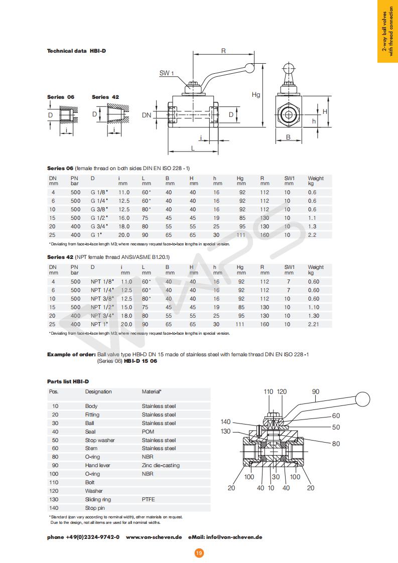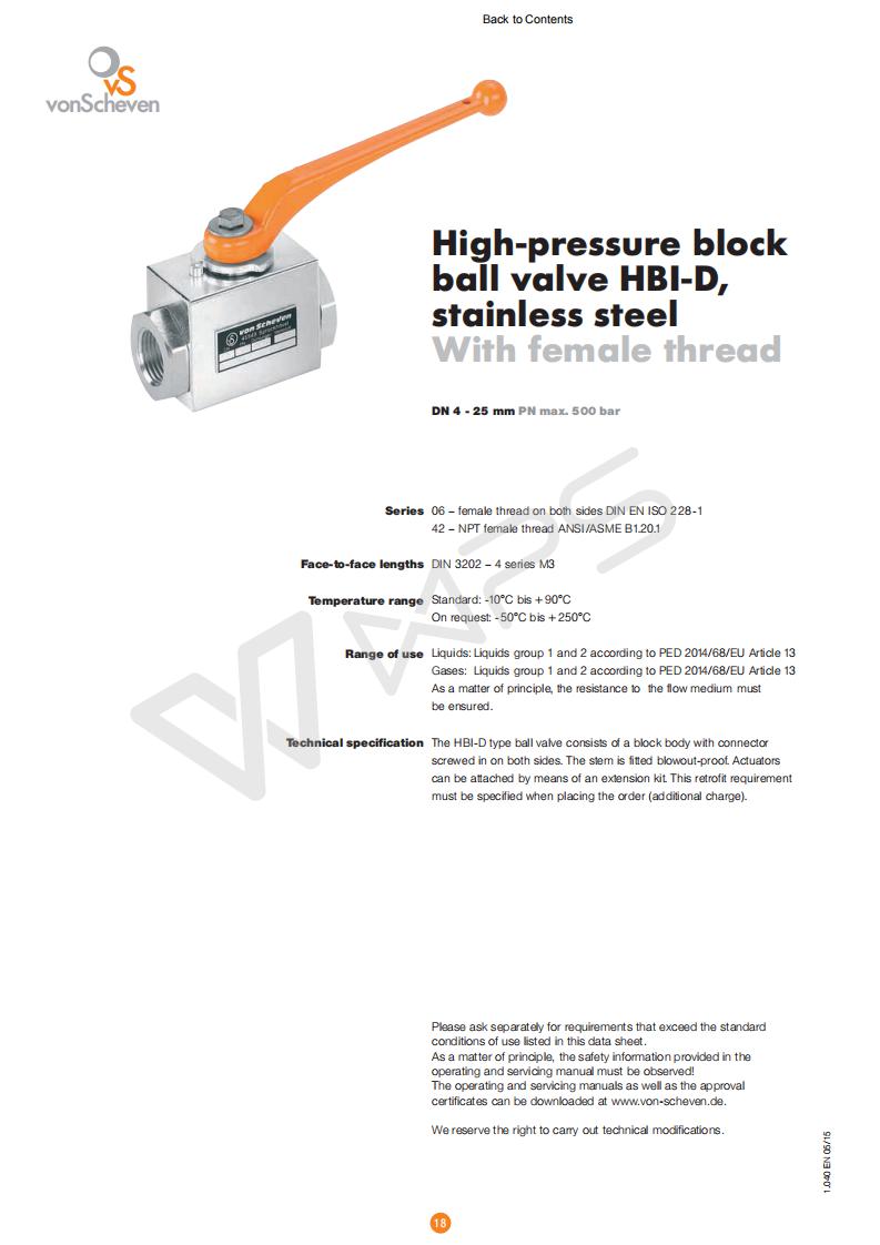 | 德國Von Scheven原裝進(jìn)口板式內(nèi)螺紋不銹鋼高壓球閥的技術(shù)參數(shù) |